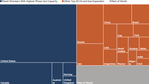 [[Bestand:Planet wreckers.png|gecentreerd|miniatuur|500x500px|''Aandeel in de verantwoordelijkheid voor geplande olie- en gasexpansie per land. Bron: Planet Wreckers Report.''<ref name=":4" />]] | |||